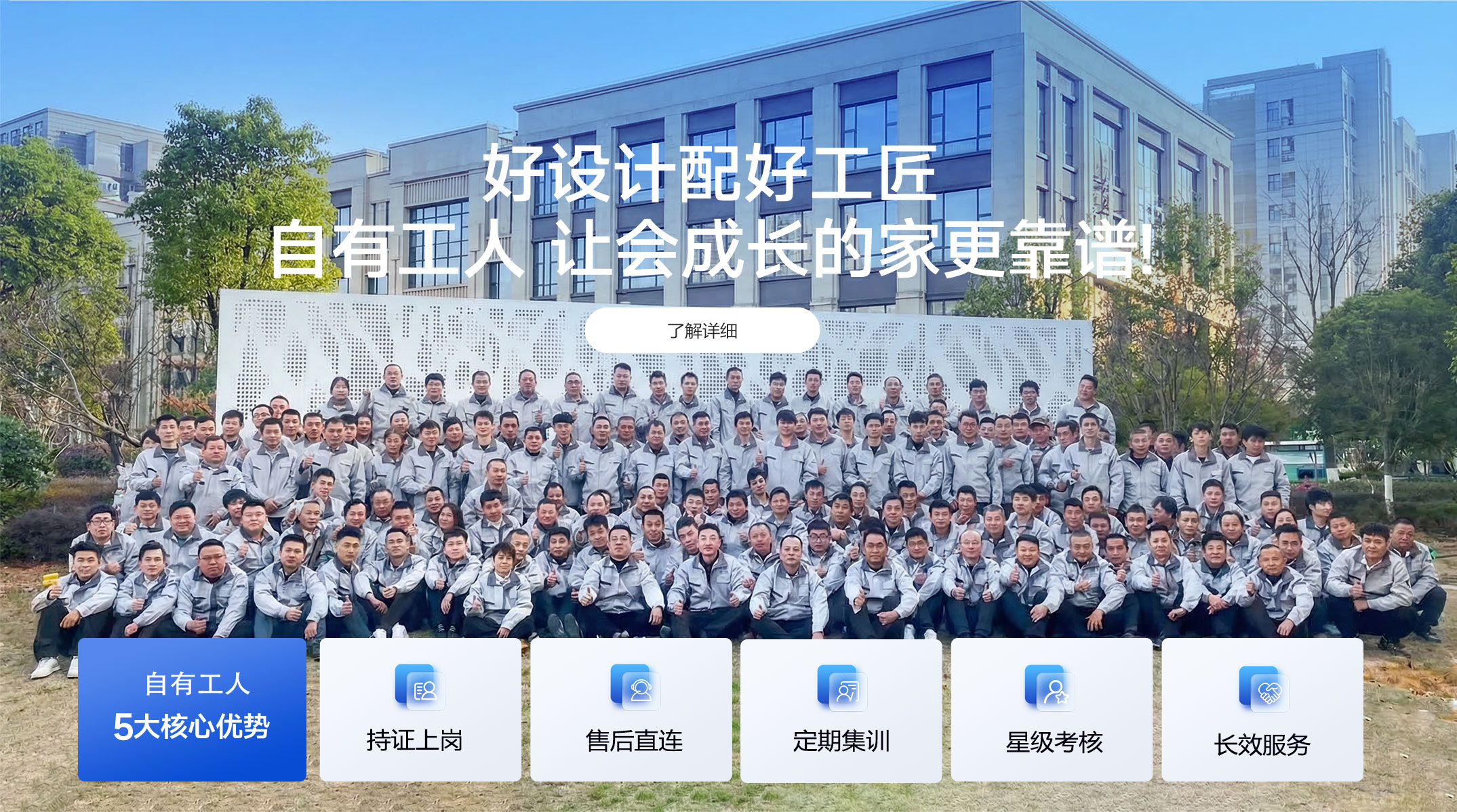 自有產(chǎn)業(yè)工人:堅(jiān)決杜絕外包,擁有300+持證施工人員,統(tǒng)一培訓(xùn)、統(tǒng)一管理