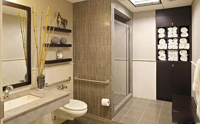 最罕見人人都知道的就是淋浴柜的收納了。小編這里建議各位在空間上結(jié)束拓展,比喻在馬桶上方打上幾個(gè)擱物架,節(jié)省空間還異常實(shí)用。