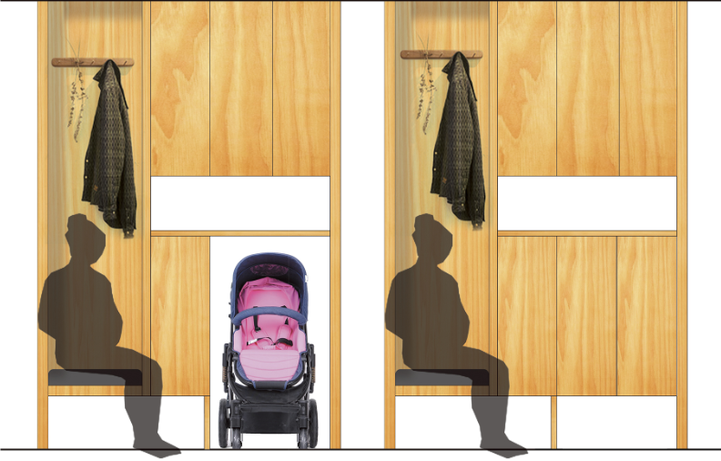 2.寶貝的交通工具收納在鞋柜活動空間內(nèi),不管是出門還是回家都很方便