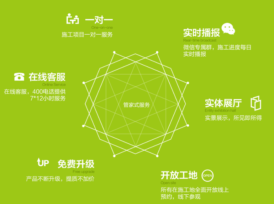 采用統(tǒng)一管理,統(tǒng)一培訓(xùn)的工人,享受公司的工資和福利待遇,并直接接受公司的管理,具備較高的職業(yè)素養(yǎng)和服務(wù)意識,徹底告別傳統(tǒng)家裝的“分包”方式