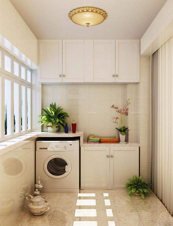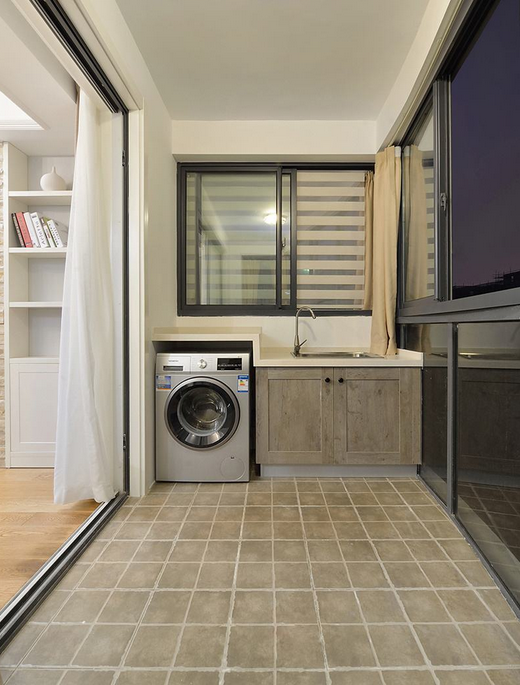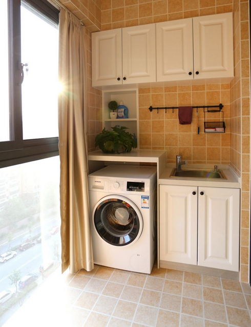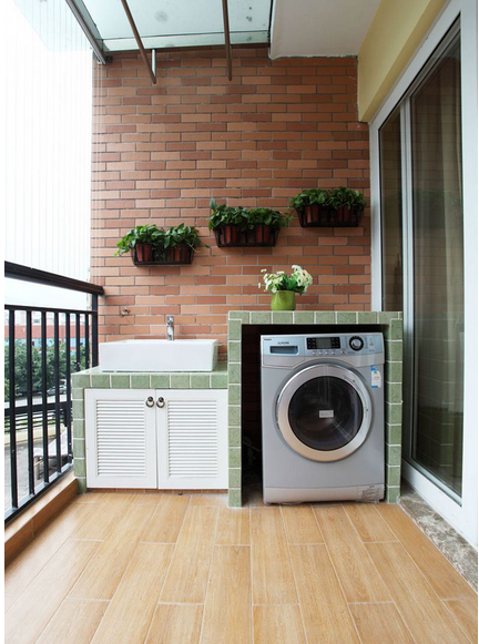 家庭衛(wèi)生間太小,不方便洗衣服,不妨將陽臺安裝水池,擺放洗衣機(jī),實(shí)用又方便。