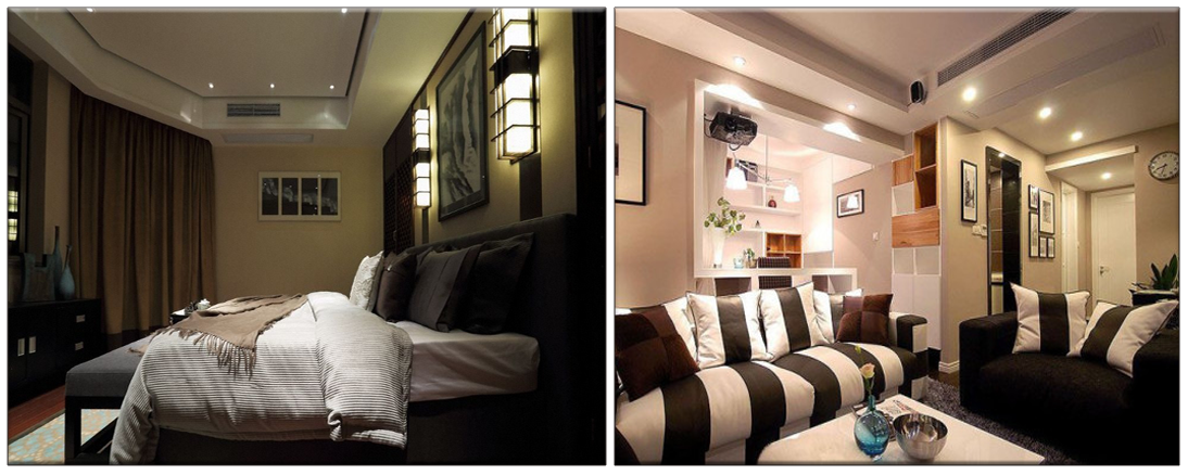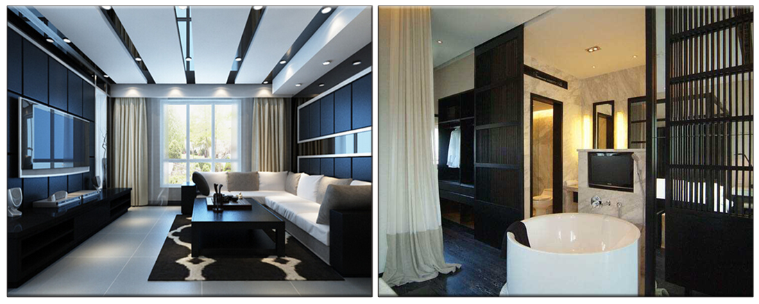 假如純黑和純白會形成很大的反差,對人的視覺也會有所損傷,所以在運用黑色停止家庭裝修時,最好可以用淡黃色交融一下
