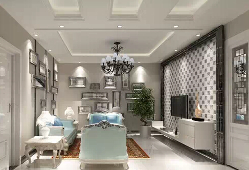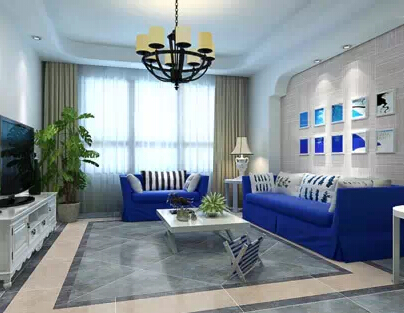 也讓空間變得更清爽明亮。淺色系木紋磚鋪貼的背景墻很好地點(diǎn)綴了質(zhì)樸的空間,藍(lán)色的沙發(fā)與純白的墻面帶來(lái)活潑的氣息。而墻掛相框則帶來(lái)濃厚的藝術(shù)氣息。