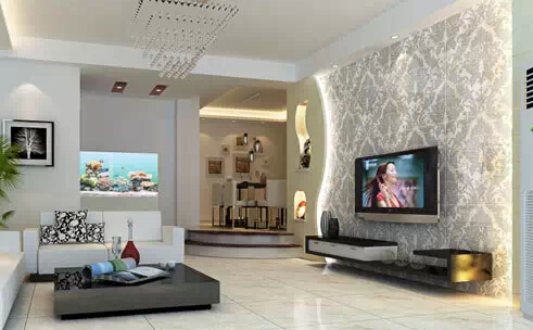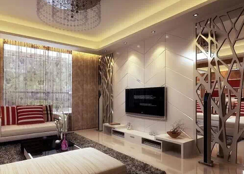 <電視背景墻淡雅的色調(diào)與家居的簡(jiǎn)約設(shè)計(jì)融合得恰到好處。精致的家具、簡(jiǎn)單的花紋、柔和的燈光。低調(diào)又不失典雅。
