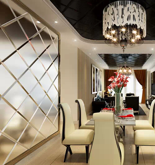 <色彩絢麗的金屬磚不適合大面積鋪貼。背景墻中局部鋪設(shè)更為適合。外表具有磨砂質(zhì)感的金屬磚采用了菱形”拼貼方法,極具科技時(shí)尚感,同時(shí)也提升了房屋的格調(diào)與品位。