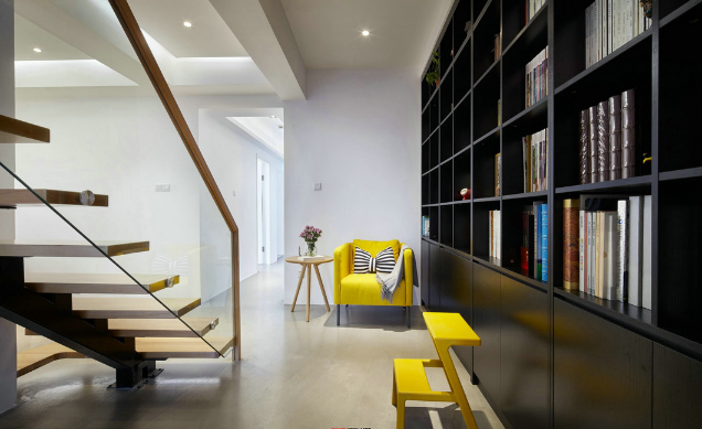 一樓空間除衛(wèi)生間以外。 一樓空間除衛(wèi)生間以外,地面均使用了實惠耐用的水泥自流平,水泥灰與大面積紅色的色塊配比簡明扼要,使用中性色進(jìn)行柔和過渡,整體空間不用紋樣和圖案裝飾,只用線條、色塊來區(qū)分點綴,實現(xiàn)空間的樸素、地道。順應(yīng)風(fēng)水的前提下將原來通向二樓的樓梯的位置和尺寸也都做了改變,將原有空間規(guī)劃中浪費的局部重新利用,與一樓的空間整體外觀做結(jié)合,從視覺上增加了整個空間的延伸感。