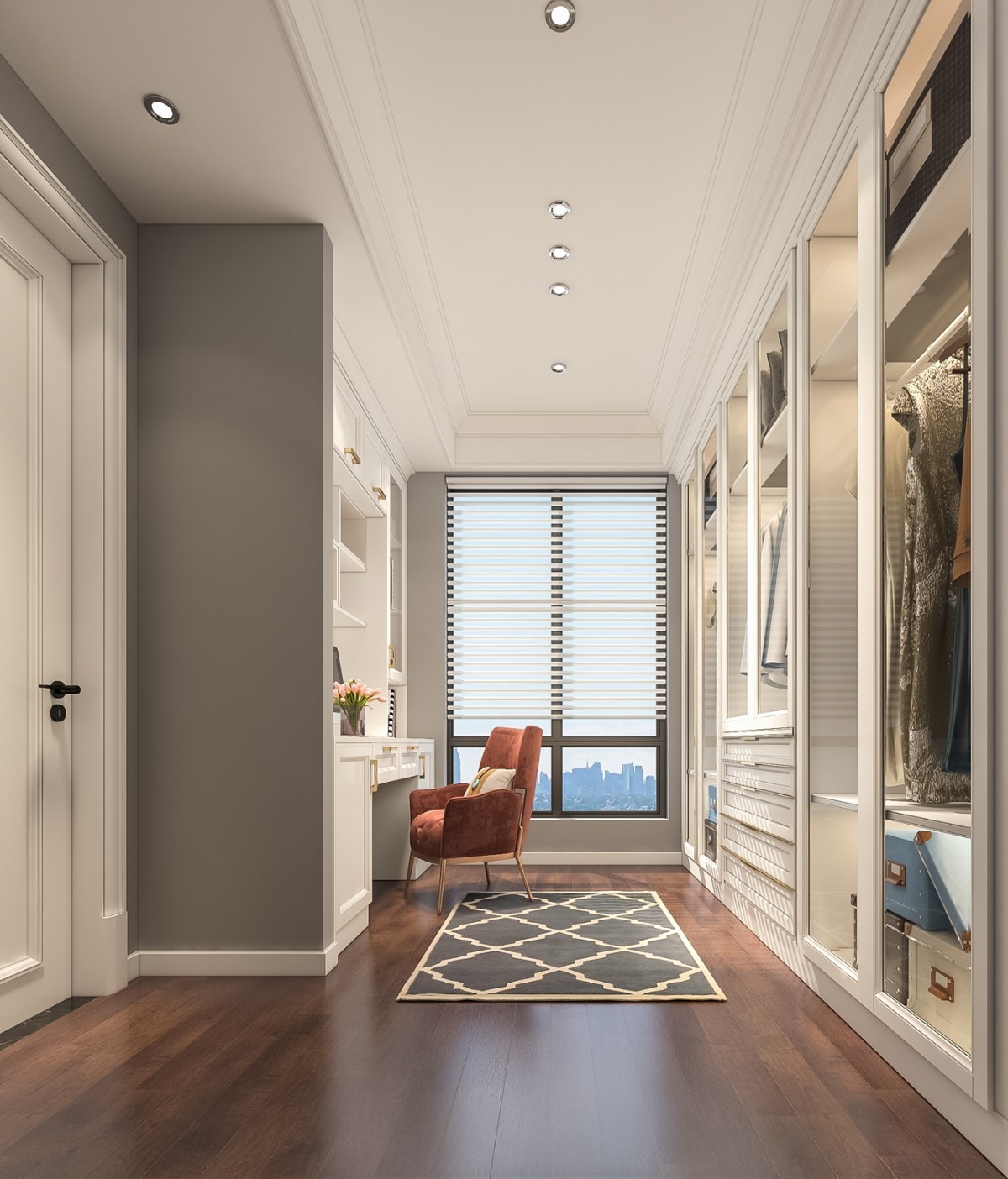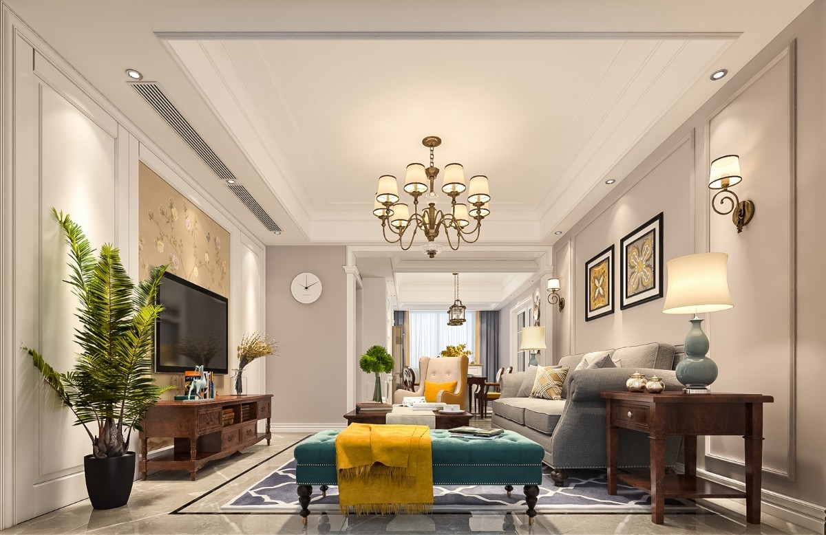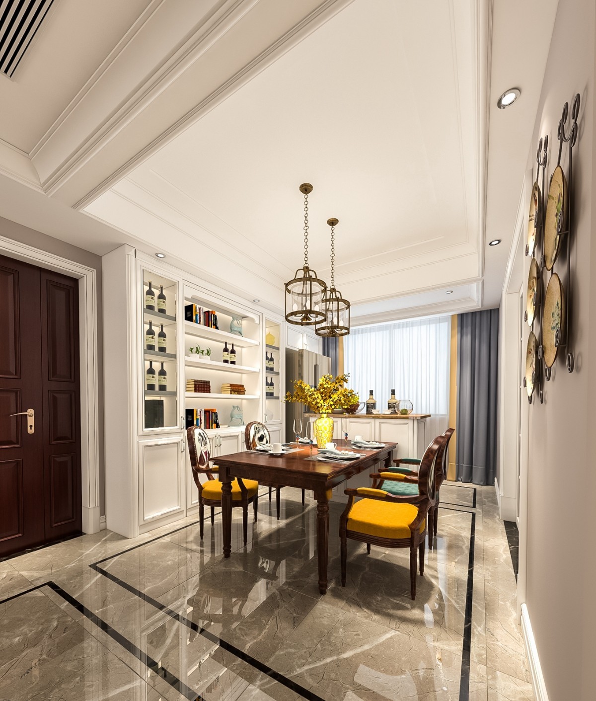 而本次設(shè)計跳出了美式風(fēng)格的傳統(tǒng)特點,在硬裝上沒有過分的做一些修飾,簡單干凈。