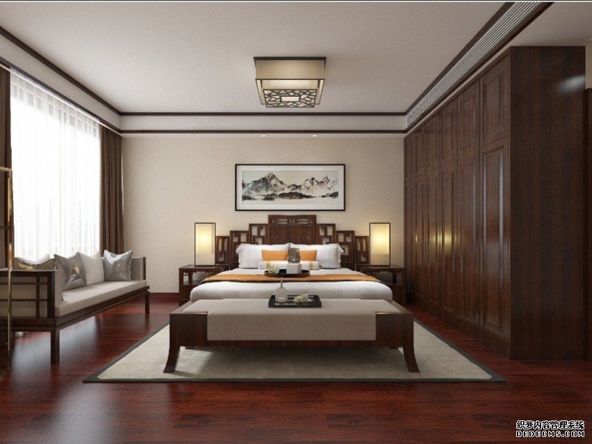 本案是綠地悅城220戶型,中式風格設計上使用木結(jié)構(gòu)最多,不論是結(jié)構(gòu)上還是家具,多為木質(zhì)結(jié)構(gòu)。常見的中式住宅家具中,最具有代表性的家具就是紅木家具,這類工藝品處處體現(xiàn)著濃郁的東方色彩。